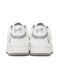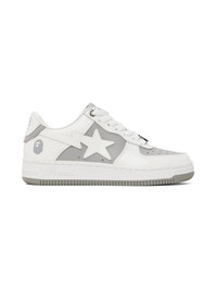 Low-top buffed and patent leather sneakers in white and gray. · Perforated detailing at toe · Logo hardware at lace-up closure · Logo patch at padded tongue · Padded collar · Logo appliqué at sides · Logo embossed at heel tab and counter · Grained leather lining · Logo-embossed rubber midsole · Treaded rubber sole · Silver-tone hardware Supplier color: Gray