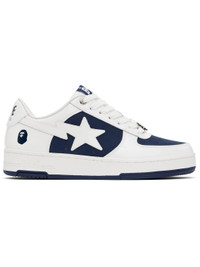 Low-top patent leather and nubuck sneakers in white and navy. - Perforations at toe - Logo plaque at lace-up closure - Logo patch at padded tongue - Padded collar - Star applique at sides - Logo embossed at heel tab and counter - Buffed leather lining - Logo embossed at rubber midsole - Treaded rubber sole Supplier color: Navy
