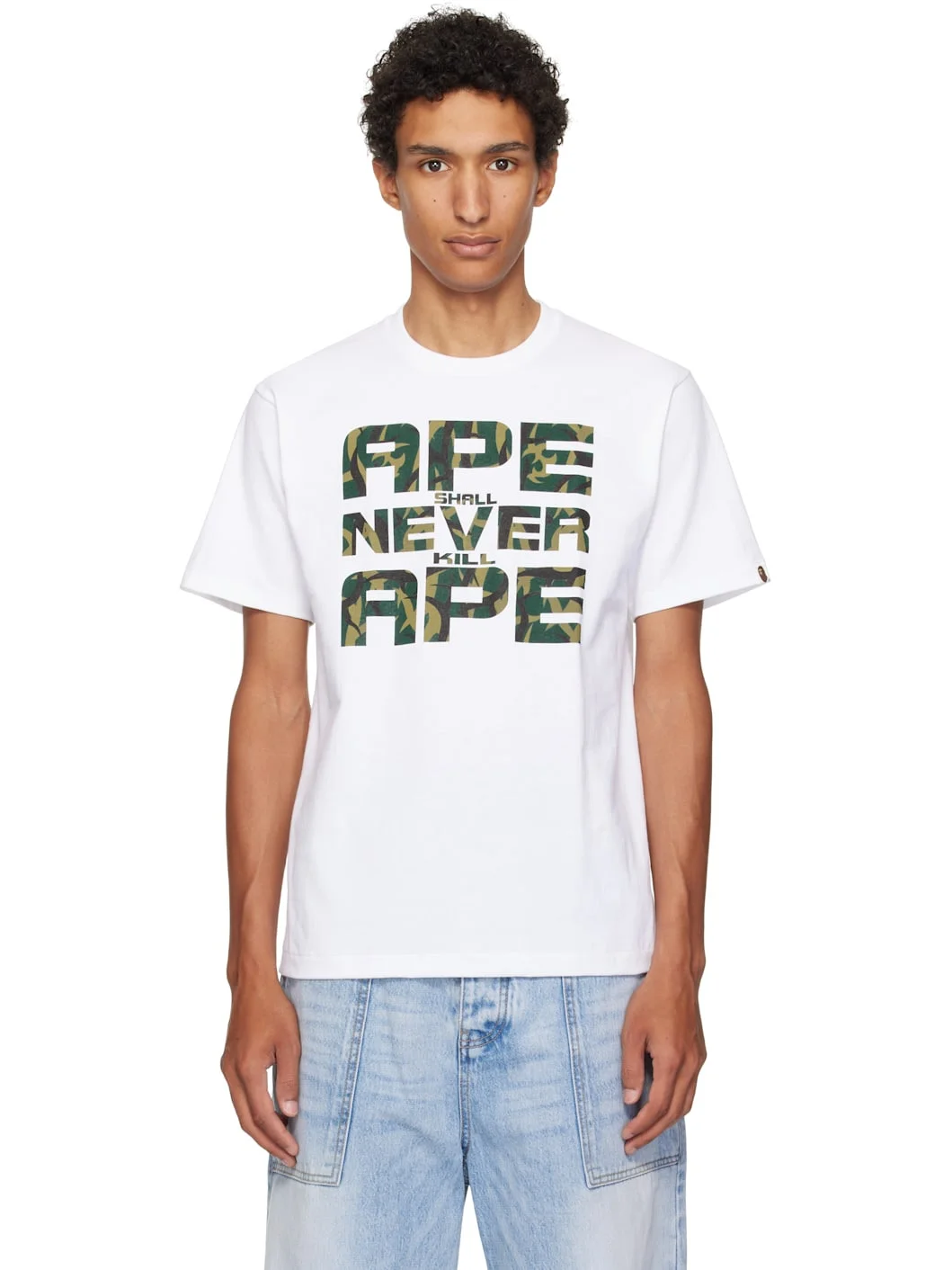 Cotton jersey T-shirt. · Rib-knit crewneck · Text printed at front · Logo flag at cuff Supplier color: White/Green 100% cotton. Made in Japan 251546M213225