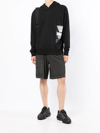 debossed-logo elasticated-waist Bermuda shorts black cotton jersey knit debossed logo to the side elasticated waistband slip-on style knee-length two side slit pockets rear welt pocket Imported Composition Cotton 100% SIZE & FIT Model measurements Height 6 ft 2 in(1.87 m) Bust/Chest 34.25 in(87 cm) Hips 36.22 in(92 cm) Waist 29.52 in(75 cm) FittingInformation This piece fits true to size. We recommend you get your regular size Designed for a slim fit at the waist and loose over the leg Made with a mid-weight fabric Washing instructions Machine Wash