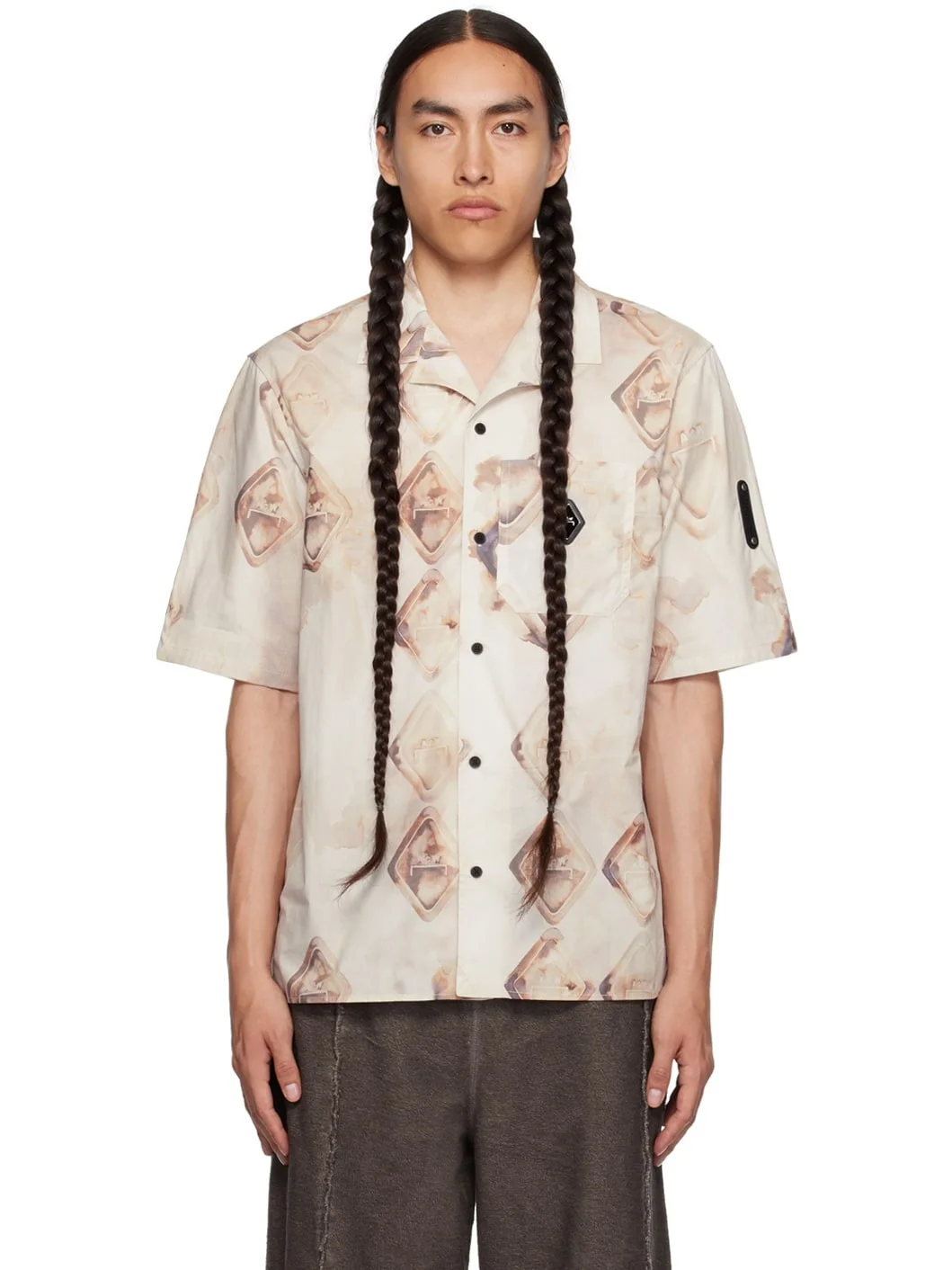 Cotton poplin shirt. Graphic and logo pattern printed throughout. · Open spread collar · Button closure · Logo plaque and patch pocket at chest · Tennis-tail hem · Rubberized logo patch at sleeve · Central vent at back hem Supplier color: Orange/Amber 100% cotton. Made in Portugal 232891M192000