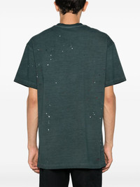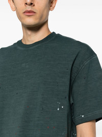 distressed cotton T-shirt A-COLD-WALL* opts for a minimalist approach with this green cotton T-shirt. It's cut in a laid-back silhouette, enhanced with a distressed finish and paint splatter details. Highlights - Teal green - Cotton - Distressed finish - Paint splatter detail - Crew neck - Drop shoulder - Short sleeves - Straight hem Imported Composition Cotton 100% Washing instructions Machine Wash