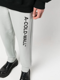 Essential logo-print track pants A-COLD-WALL*'s streetwear aesthetic is exemplified in these stone grey track pants through their slouchy silhouette, punctuated by the brand's logo to the side for a certified finish. Imported Composition Lining: Cotton 100% Outer: Cotton 100% SIZE & FIT Model measurements Height 6 ft 1 in(1.85 m) Bust/Chest 35.82 in(91 cm) Hips 37.79 in(96 cm) Waist 29.13 in(74 cm) Washing instructions Machine Wash