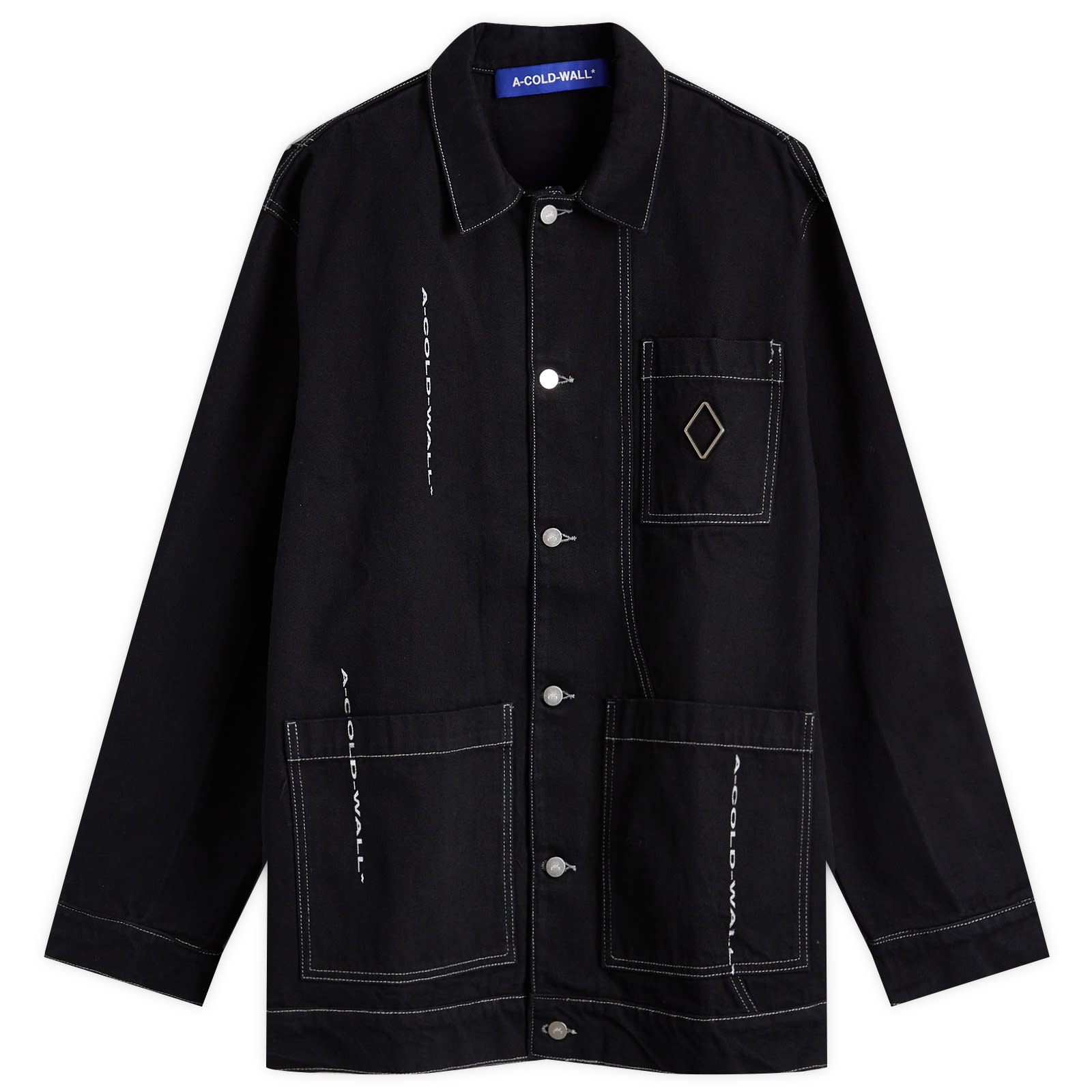 From Samuel Ross’s label, this A-COLD-WALL* Format Jacket combines traditional workwear uniforms and classic tailoring. Crafted using a technical, denim material, this overshirt fuses fashion with functionality. On the chest, all over stitching and logos offers a striking finishing touch. - 100% Cotton - Classic Collar - Button Closure - Welt Pockets
