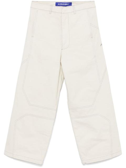 Format wide-leg trousers Highlights - Light beige - Cotton - Twill weave - Contrast stitching - Panelled design - Concealed front fastening - Belt loops - Two side inset pockets - Logo print at the leg - Two rear jetted pockets - Wide leg - Cropped Imported Composition Cotton 100% SIZE & FIT Model measurements Height 6 ft 2 in(1.87 m) Bust/Chest 35.03 in(89 cm) Hips 34.64 in(88 cm) Waist 25.98 in(66 cm) FittingInformation Designed with a wide leg, offering a loose and roomy fit Made from a midweight non-stretch fabric