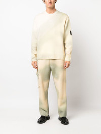 gradient high-waist trousers The effortless style of the London streets defines A-COLD-WALL*'s DNA, as the brand plays with textiles and patterns to elevate the classic streetwear look. Cut from wool - these high-waist trousers have a soft sage green-hued gradient design. Highlights - Bone yellow/sage green - Wool - Gradient effect - High waist - Two side slit pockets - Side cargo pocket - Straight leg Imported Composition Wool 100% SIZE & FIT Model measurements Height 6 ft 2 in(1.89 m) Bust/Chest 37.79 in(96 cm) Hips 37 in(94 cm) Waist 29.92 in(76 cm) FittingInformation Designed with a dropped crotch, offering a loose and relaxed fit Adjust this piece’s waistband to your preference using the drawstring Made with a midweight knit, this piece offers some stretch This piece fits true to size – take your usual size Washing instructions Machine Wash