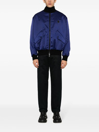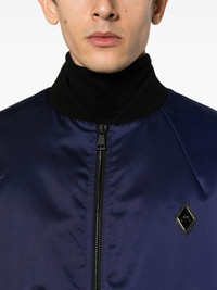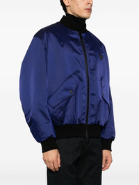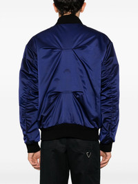 logo-patch bomber jacket Highlights - Midnight blue - Tonal stitching - Logo patch at the chest - Logo patch at the sleeve - Gathered detailing - Stand-up collar - Front two-way zip fastening - Drop shoulder - Long sleeves - Ribbed cuffs and hem - Two front flap pockets Made in Italy Composition Outer: Polyamide 100% Lining: Polyamide 100%, Cotton 100%, Polyester 100% SIZE & FIT Model measurements Height 6 ft 2 in(1.87 m) Bust/Chest 36.41 in(92.5 cm) Hips 35.43 in(90 cm) Waist 29.52 in(75 cm) FittingInformation Designed to be unstructured, offering a loose fit throughout The ribbed hem offers a close, comfortable fit Made from a midweight non-stretch fabric This piece fits true to size – take your usual size Washing instructions Machine Wash