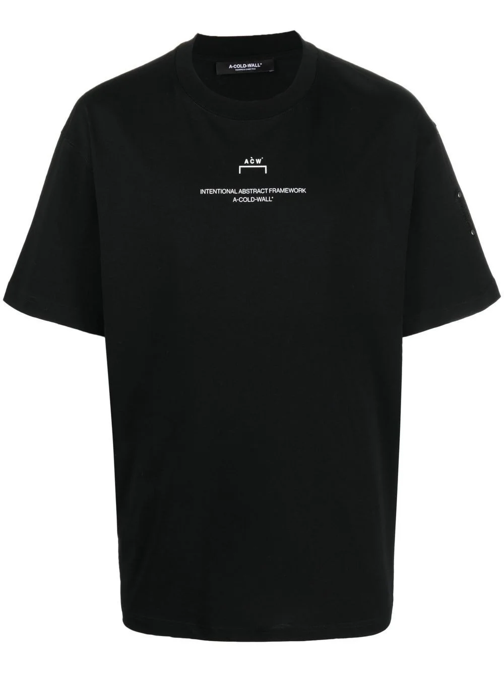 logo-print short-sleeve T-shirt For SS23, A-COLD-WALL* imparts a branded twist on a minimal silhouette. Crafted from weighty cotton, this T-shirt features the brand's signature bracket embroidery at the chest and a tonal logo patch at the sleeve. Imported Composition Cotton 100% SIZE & FIT Model measurements Height 6 ft 1 in(1.86 m) Bust/Chest 37.4 in(95 cm) Hips 34.64 in(88 cm) Waist 29.13 in(74 cm) Measurement CHEST 43.3 in(110 cm) LENGTH 27.55 in(70 cm) SLEEVE LENGTH 8.26 in(21 cm) Shoulder Width 20.86 in(53 cm) FittingInformation Designed to be unstructured, offering a loose fit throughout Made from a midweight non-stretch fabric, this piece offers minimal elasticity when worn Washing instructions Machine Wash