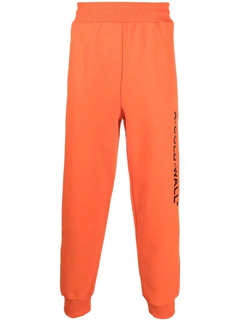 logo-print track pants logo-print track pants from A-COLD-WALL* featuring carrot orange, cotton, logo print at the leg, elasticated waistband, rear welt pocket and elasticated ankles. Imported Composition Outer: Cotton 100% Lining: Cotton 100% SIZE & FIT Model measurements Height 6 ft 0 in(1.84 m) Bust/Chest 35.82 in(91 cm) Hips 37 in(94 cm) Waist 28.34 in(72 cm) FittingInformation This piece fits true to size. We recommend you get your regular size Designed to be loose over the leg with a fitted waist and hem Made with a mid-weight fabric Washing instructions Machine Wash