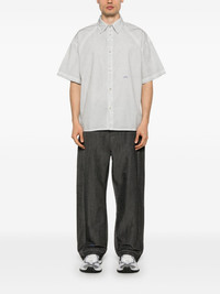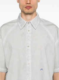 Millbank shirt Highlights - Zen grey - Front button placket - Embroidered logo to the front - Classic collar - High-low hem Imported Composition Cotton 100% SIZE & FIT Model measurements Height 6 ft 1 in(1.86 m) Bust/Chest 37.4 in(95 cm) Hips 36.22 in(92 cm) Waist 29.52 in(75 cm) FittingInformation Designed for a boxy fit, intended for a loose fit throughout Made from a midweight non-stretch fabric