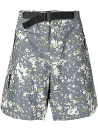 Nephin belted Bermuda shorts grey/multicolour camouflage pattern double layer waterproof belted waist reflective detailing two side slit pockets rear patch pocket mid-rise above-knee length Imported Composition Polyester 100% SIZE & FIT Model measurements Height 6 ft 2 in(1.87 m) Bust/Chest 34.25 in(87 cm) Hips 36.22 in(92 cm) Waist 29.52 in(75 cm) FittingInformation This piece fits true to size. We recommend you get your regular size Designed for a slim fit at the waist and loose over the leg Made with a lightweight non-stretch fabric Washing instructions Machine Wash