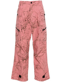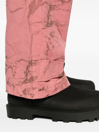 Overdye Static cargo trousers Highlights - Dark pink - Cotton - Ripstop texture - Marbled pattern - Logo plaque - Belt loops - Front button and zip fastening - Tapered leg - Multiple cargo pockets - Touch-strap cuffs - Long length Imported Composition Cotton 100% SIZE & FIT Model measurements Height 6 ft 2 in(1.87 m) Bust/Chest 37.79 in(96 cm) Hips 37.79 in(96 cm) Waist 30.31 in(77 cm) FittingInformation Designed for a straight-leg, allowing for an unrestricted and comfortable fit over the leg The adjustable tabs allow for fitted preferences Made from a midweight non-stretch fabric This piece fits true to size – take your usual size