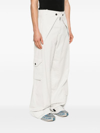 Overlay twill cargo trousers Highlights - Light grey - Stretch-cotton - Twill weave - Panelled design - Logo plaque - Decorative button detailing - Belt loops detail at the leg - Wide leg - Mid-rise - Hook and zip fly fastening - Belt loops - Two side slit pockets - Multiple cargo pockets - Touch-strap ankles Imported Composition Cotton 97%, Elastane 3% SIZE & FIT Model measurements Height 6 ft 2 in(1.87 m) Bust/Chest 37.79 in(96 cm) Hips 37.79 in(96 cm) Waist 30.31 in(77 cm) FittingInformation Designed with a wide leg, offering a loose and roomy fit The adjustable tabs allow for fitted preferences Made from a midweight non-stretch fabric This piece fits true to size – take your usual size