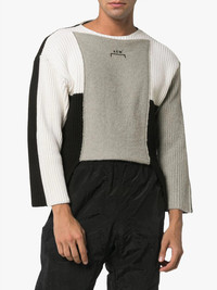 panelled asymmetric merino blend jumper Examining the clash of class and environment in British society, A-COLD-WALL* offers social commentary through its cutting-edge streetwear garments. Crafted in Italy, this black, white and grey panelled merino wool blend jumper from A-COLD-WALL* features a round neck, long sleeves, an asymmetric hem and a ribbed design. Made in Italy Composition Merino 50%, Acrylic 50% SIZE & FIT Model measurements Height 6 ft 1 in(1.85 m) Bust/Chest 37.79 in(96 cm) Hips 37.4 in(95 cm) Waist 30.7 in(78 cm) Washing instructions Hand Wash