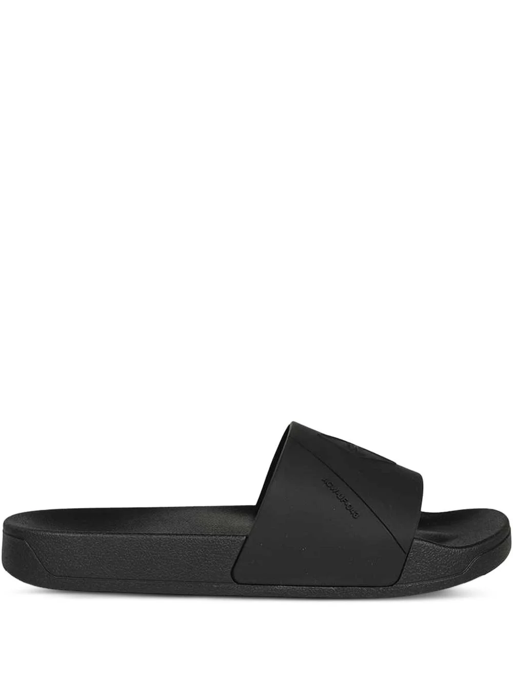 logo-detail slides Highlights - Black - Rubber sole - Flat sole - Open toe - Logo detail Imported Composition Outer: Polyurethane 100% Sole: Rubber 100% Lining: Polyurethane 100%