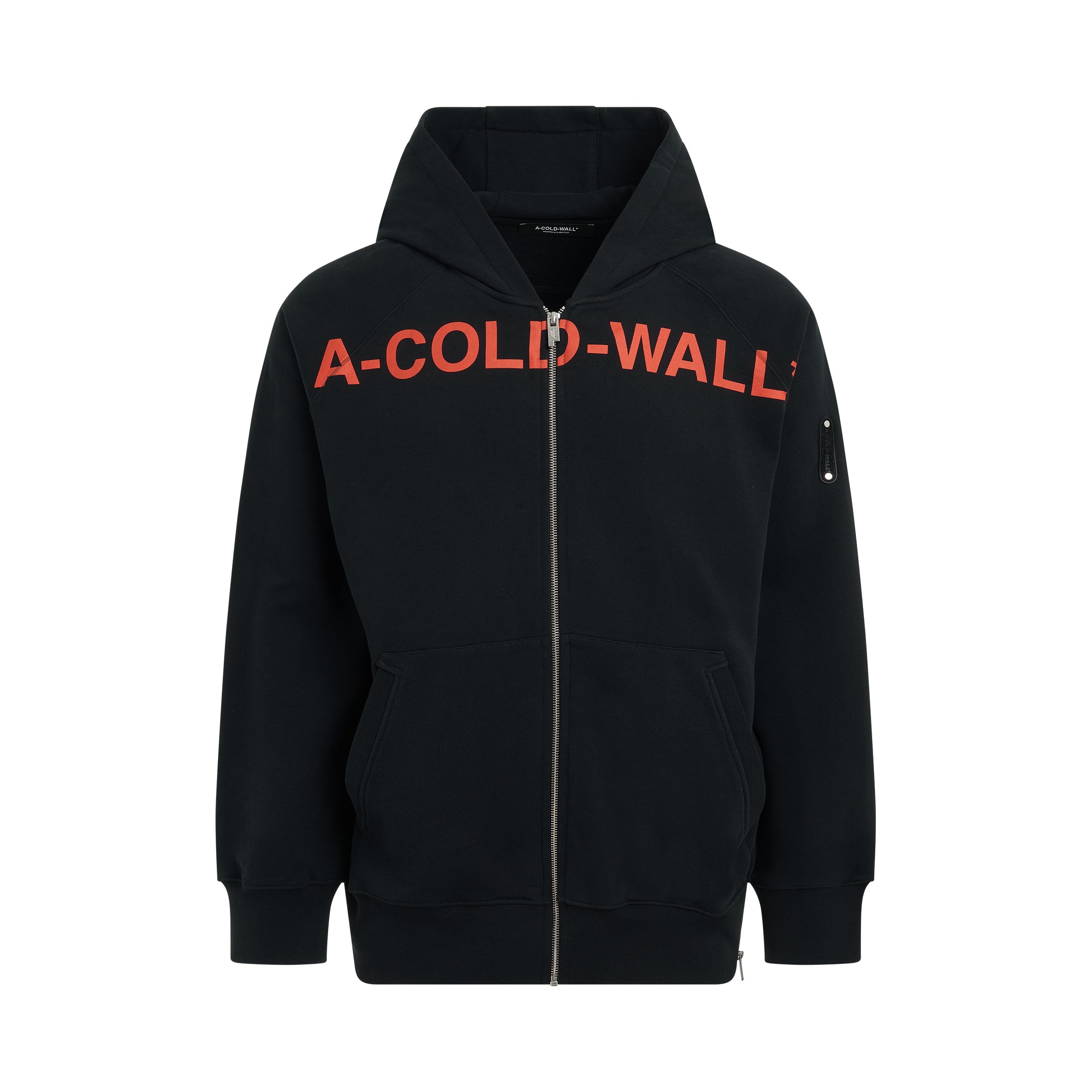 Long sleeves Sphere logo-print hoodie from A-COLD-WALL* featuring black, orange, cotton, graphic print to the rear, logo print at the chest, classic hood, front zip fastening. • Composition:100%Cotton • Long sleeves • Classic hood • Graphic print on the front and back • Logo patch on the back • Front zip fastening SKU: ACWMW111