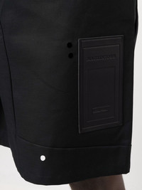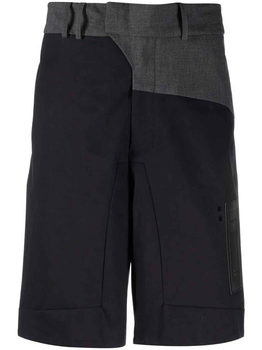 two-tone shorts Black/grey cotton two-tone shorts from A-COLD-WALL* featuring two-tone design, logo patch to the side, eyelet detailing, concealed front fastening, belt loops, two side slash pockets, rear welt pocket and knee-length. Made in United Kingdom Composition Cotton 100% SIZE & FIT Model measurements Height 6 ft 1 in(1.86 m) Bust/Chest 36.61 in(93 cm) Hips 36.61 in(93 cm) Waist 29.92 in(76 cm) FittingInformation This piece fits true to size. We recommend you get your regular size Designed for a slim fit at the waist and loose over the leg Made with a mid-weight non-stretch fabric Washing instructions Dry Clean Only