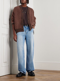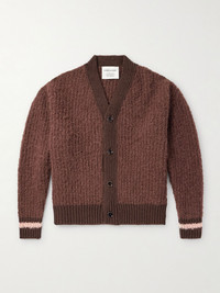 A Kind of Guise's cardigan is a tactile take on collegiate styles. It's rib-knitted from a warm blend featuring plenty of virgin wool and alpaca and has a stripe on each cuff. Size & Fit - Fits true to size. Take your normal size - Designed for a relaxed fit - Weighted knit - Model is shown wearing a M - Model measures: chest 38"/ 96cm, height 6'0"/ 183cm Details & Care - Tonal-brown and light-pink virgin wool-blend - Button fastenings - 61% virgin wool, 35% alpaca, 4% polyamide - Dry clean