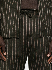striped trousers Highlights - Brown - Vertical stripe pattern - Drawstring waist - Side slit pockets Made in Italy Composition Virgin Wool 93%, Mohair 6%, Polyamide 1% SIZE & FIT Model measurements Height 6 ft 2 in(1.87 m) Bust/Chest 36.41 in(92.5 cm) Hips 37 in(94 cm) Waist 29.52 in(75 cm) Washing instructions Read Manufacturer Guidelines