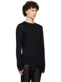Semi-sheer viscose jersey T-shirt. Raw edges throughout. · Round neck · Satin trim at interior seams Supplier color: Black Body: 100% viscose. Trim: 100% polyester. Made in United Kingdom 252678M213000