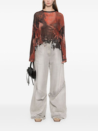 Turri top Highlights - Terracotta orange - Black - Mesh design - Semi-sheer construction - Abstract pattern print - Crew neck - Drop shoulder - Long sleeves - Devore effect - Unlined - Asymmetric hem - When buying this unisex item, keep in mind that it is graded in standard men's sizing. Imported Composition Polyester 94%, Spandex/Elastane 6% SIZE & FIT Model measurements Height 6 ft 1 in(1.85 m) Bust/Chest 35.82 in(91 cm) Hips 37.79 in(96 cm) Waist 29.13 in(74 cm) FittingInformation This unisex piece is designed for a loose fit whether you usually select women's or men's sizes Made from a lightweight stretch fabric, this piece offers elasticity and flexibility when worn