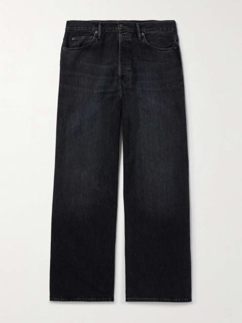 Acne Studios' wide-leg '1981M' jeans are designed to sit low on the waist. They're cut from pure denim and have a black wash with light fading and whiskering. Size & Fit - Fits true to size. Take your normal size - Regular-straight leg - Mid-weight, non-stretchy fabric - Model is shown wearing an IT 48 - Model measures: waist size 32, height 6'3"/ 191cm Details & Care - Black denim - Button fastenings - 100% cotton; trim: 100% leather (Cow) - Machine wash
