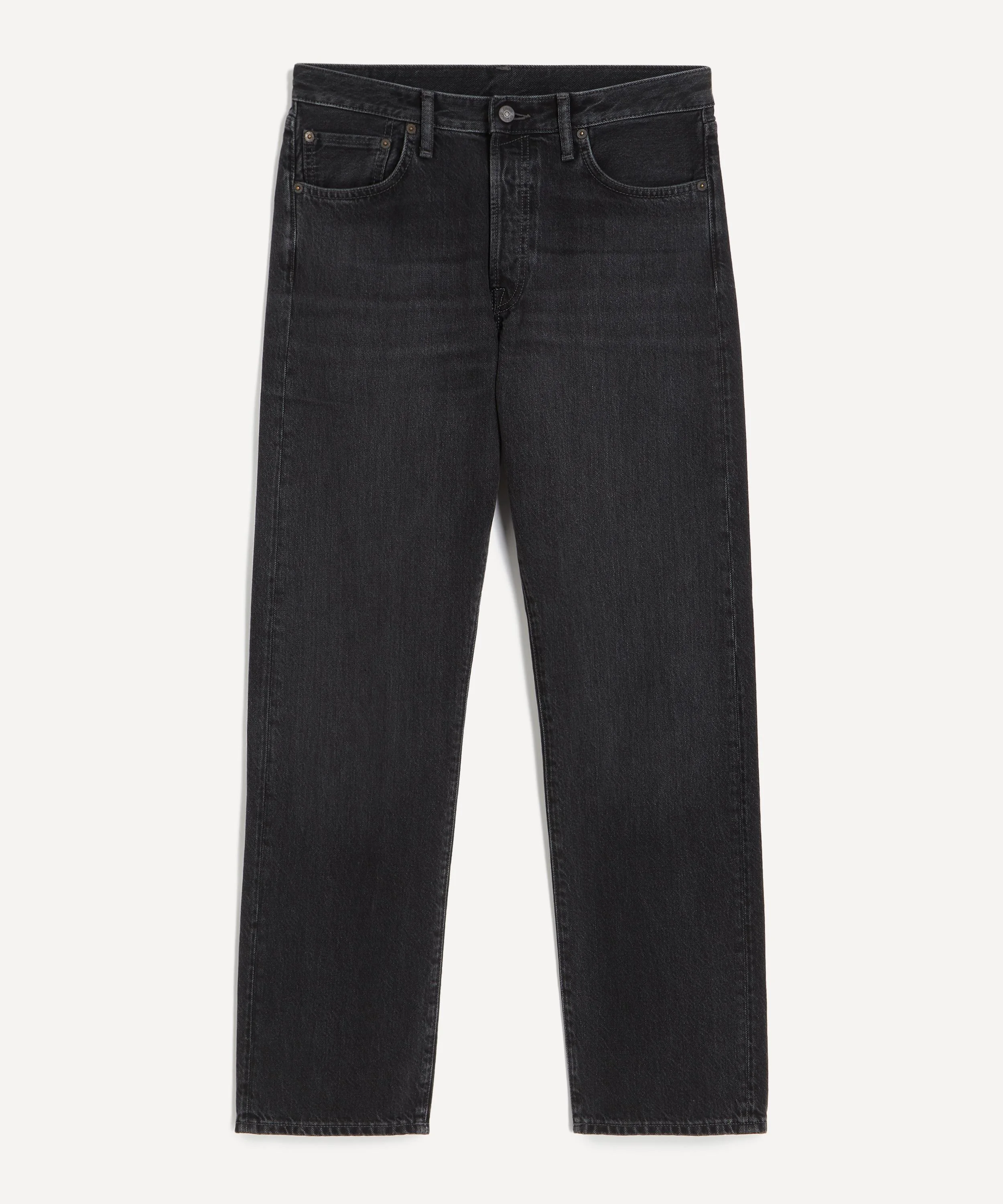 DETAILS 1996 vintage black jeans Non-stretch rigid cotton denim Regular fit Mid-rise Straight-leg 5-pocket construction Button fly Belt loops Logo-embossed patch Inside leg: 28" Front rise: 11" COMPOSITION & CARE 100% Cotton Machine wash
