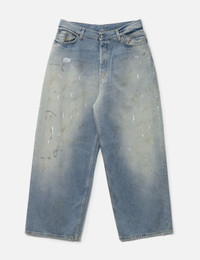 - Acne Studios - Super Baggy Fit Jeans - 2023M - Non stretch cotton blend denim fabric - Mid waist - Button fly - 5 pocket style - Super wide leg - Stain marks throughout for a vintage, distressed finish - Color: Light Blue - Material: 60% Cotton, 40% Lyocell - See more Jeans and Clothing SIZING - Model wears size 48 - Model measures: Height 186cm, Chest 34”/86cm, Waist 28”/71cm, Hip 36”/91cm