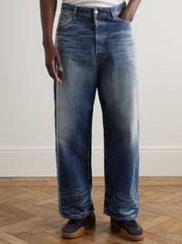 Acne Studios' faded '2023M' jeans are heavily whiskered to create the look of rippling water. Detailed with signature pink bartack stitching at the back, they're cut for a wide-leg fit from organic denim and have elongated legs meant to pool at the floor. Small to size. See Size & Fit notes. Size & Fit - Fits large to size. Take one size smaller than normal - Wide leg, low-crotch style - Mid-weight, non-stretchy denim - Model is shown wearing an IT 46 - Model measures: waist size 32, height 6'2"/ 188cm Details & Care - Blue organic denim - Button fastenings - 80% organic cotton, 20% recycled cotton - Machine wash