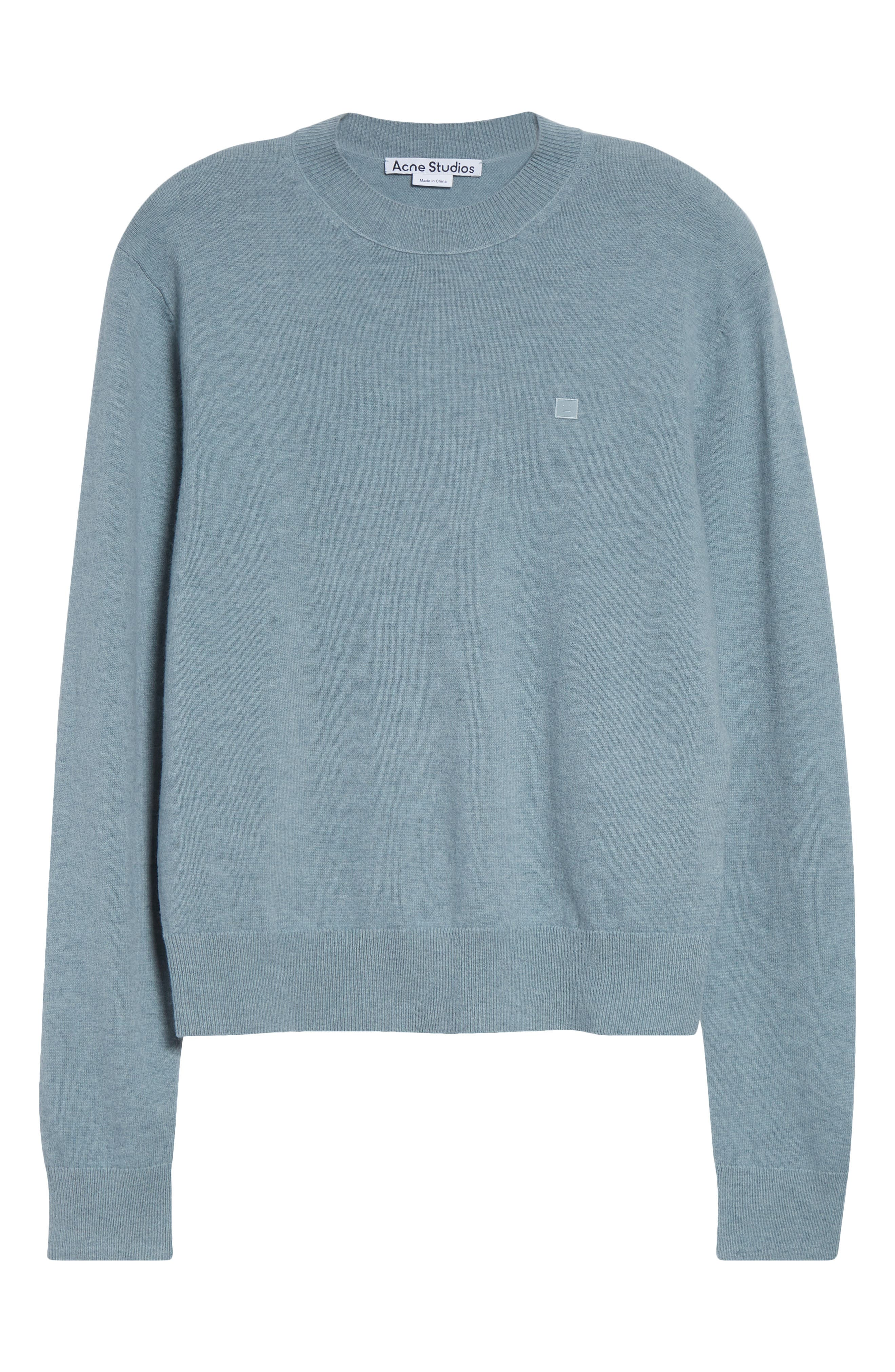 Acne Studios Kalas Core Face Patch Wool & Yak Hair Sweater in Dusty Blue at Nordstrom