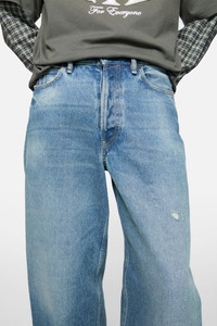 1981 jeans are cut to a baggy fit with a low waist, wide leg and long length. Crafted from non stretch denim in vintage blue wash. - Baggy fit - Low waist - Wide leg - Long length - Back leather logo patch - 5-Pocket construction - Button fly - Female model is 180 cm / 5'9" and wears a size Small, Regular corresponds to a size 36 and 27 denim - Male model is 188 cm / 6′2" and wears a size Small, Regular corresponds to a size 46 and 29 denim - Style ID: Acne Studios 1981 U Vintage Blue - Shell: 100% Organic cotton, Patch: 100% Cow leather