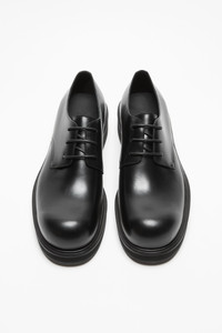 Derby shoes with round toe crafted from brush-off calf leather, detailed with waxed cotton laces and a constructed sole combining micro and rubber for durability and grip. - Derby shoes - Round toe - Brush-off calf leather - Waxed cotton laces - Heel height: 35 mm - Sole height: 20 mm - Style ID: AC-MN-SHOE000009 - Uppers: 100% Calf leather, Lining: 100% Calf leather, Soles: 100% Rubber