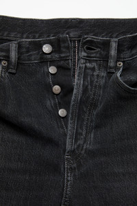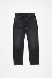 Jeans crafted from deep black, overdyed non-stretch denim with a salt-and-pepper wash, finished for an authentic worn-in effect. 1996 jeans are cut to a regular fit with a mid waist and a straight leg. - Overdyed non-stretch denim - Salt-and-pepper wash - Regular fit with - Mid waist - Straight leg - 5-pocket construction - Model is 188 cm / 6'2 and wears a 29/34 - Style ID: Acne Studios 1996 Vintage Black SS25 - Made from organically grown cotton - Shell: 100% Cotton, Patch: 100% Cow leather