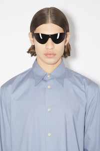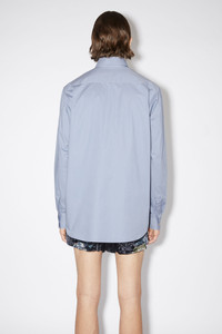 Acne Studios dusty blue button-up shirt is crafted from cotton and is cut to a regular fit. - Regular fit - Classic shirt construction - Button-up closure - Care label branding internal back - Model is 182.5 cm / 6′ and wears a size 46 - Style ID: FN-MN-SHIR000645 - Main material made from organically grown cotton - Shell: 95% Cotton, 5% Elastane
