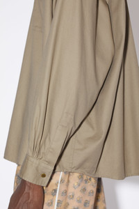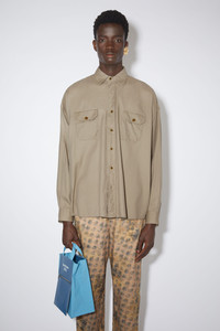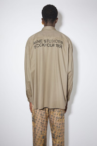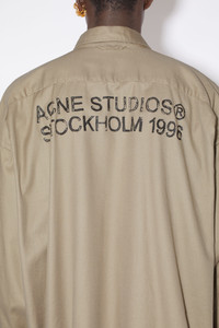 Acne Studios sand beige button-up shirt is crafted from cotton, detailed with two chest pockets with embroidered eyelets and a visible button placket. Adorned with an Acne Studios logo stamp print on the back. Cut to a relaxed fit. - Relaxed fit - Button-up - Two chest pockets - Visible placket - Acne Studios logo stamp print on the back - Model is 189 cm / 6'2 and wears a size 46 - Made from organically grown cotton - Shell: 100% Cotton