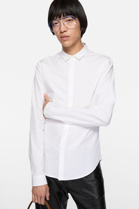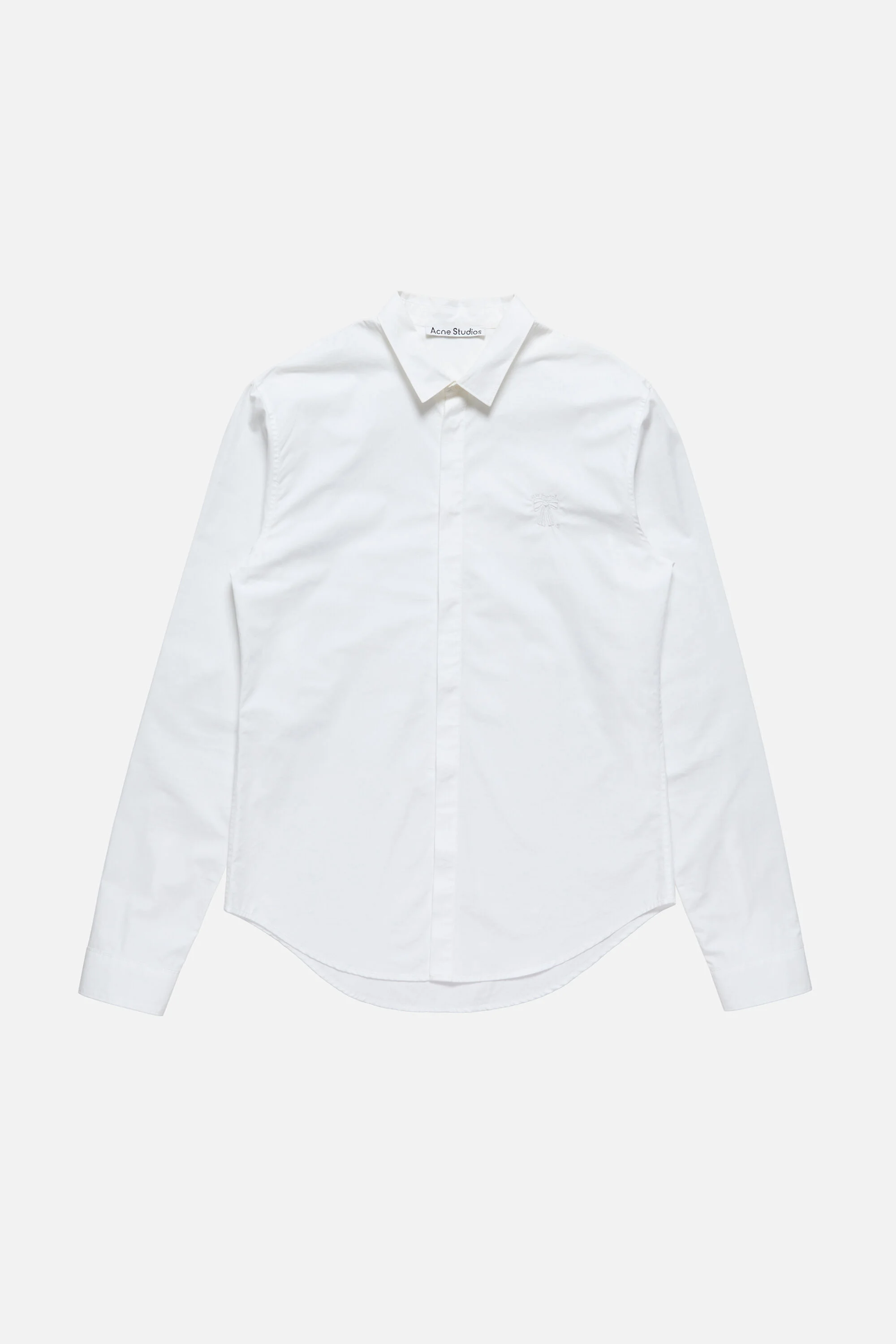 Long-sleeve button-up shirt crafted from crisp cotton poplin with a silky feel. Features a hidden button placket and seasonal bow embroidery on the chest. Cut to a fitted silhouette with regular sleeves and hip length. - Long-sleeve button-up - Fitted silhouette - Regular sleeves - Hip length - Hidden button placket - Seasonal bow embroidery - Model is 186 cm / 6' and wears a size 46 - Style ID: FN-MN-SHIR000976 - Made with organically grown cotton - Shell: 100% Cotton
