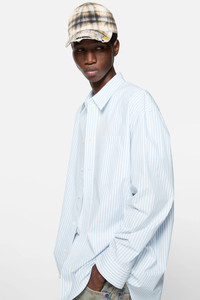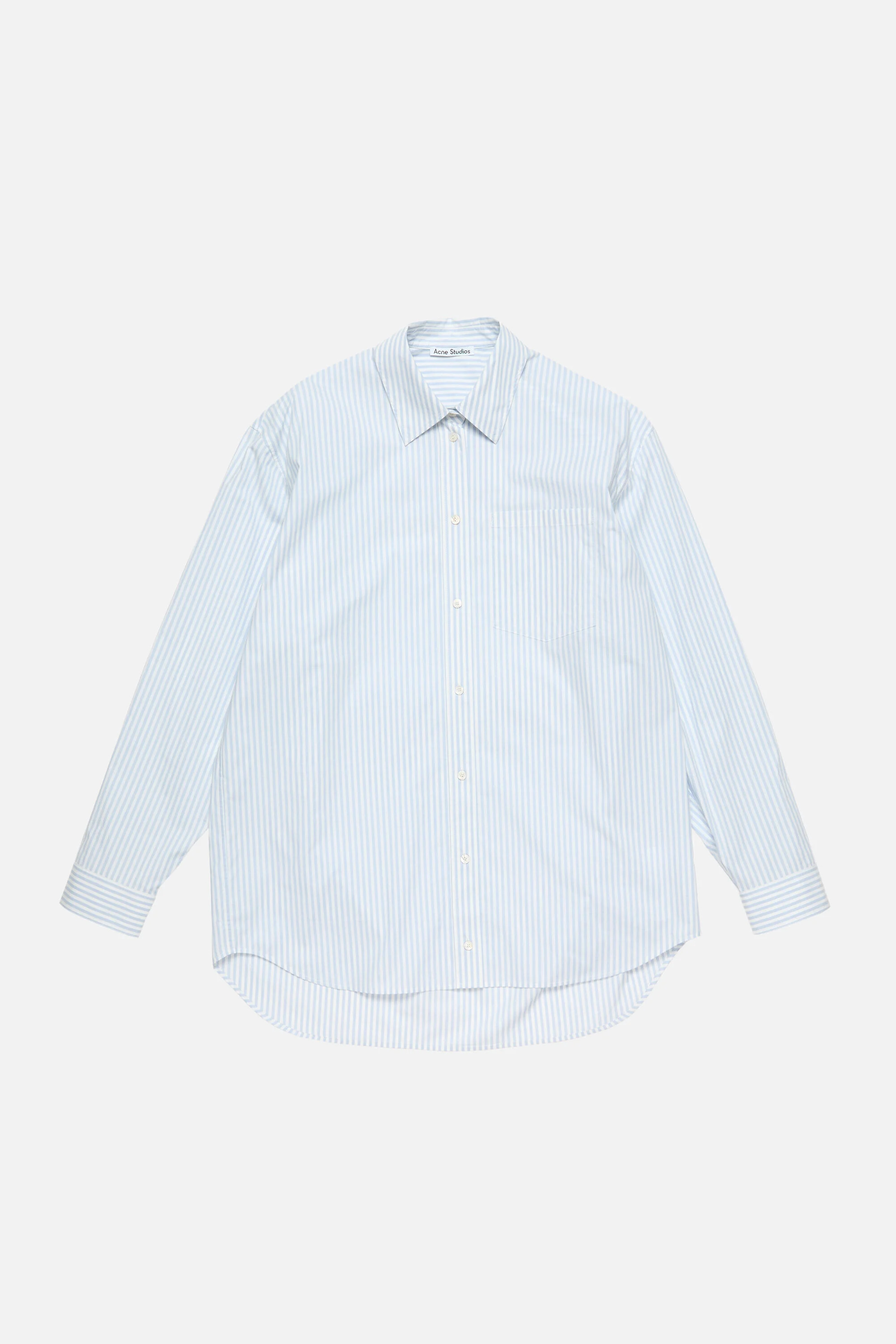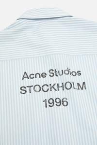 Striped button-up shirt is crafted from cotton, detailed with an Acne Studios stamp logo print at the back. Cut to a relaxed fit and below hip length. - Relaxed fit - Below hip length - Button-up closure - Acne Studios stamp logo - Female model is 177 cm / 5'10 and wears a size XS - Male model is 187 cm / 6'2 and wears a size M - Style ID: FN-UX-SHIR000064 - Shell: 100% Organic cotton