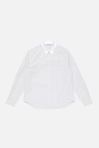Long sleeve button-up shirt features a stripe pattern and contrast collar, detailed with a Face logo at the front. Cut to a regular unisex fit and below hip length. - Regular unisex fit - Below hip length - Button-up closure - Contrast collar - Face logo - Female model is 180 cm / 5′11″ and wears a size XS - Male model is 188 cm / 6'2 and wears a size M - Style ID: FA-UX-SHIR000092 - Shell: 100% Cotton, Contrast: 100% Cotton