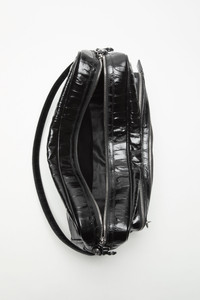 The Camero bag features a multipocket typology with a soft, rectangular design and a compact, structured silhouette. Crafted in croco-print leather, it is accented with multiple zip compartments, a branded key charm, and signature denim-style button logo details. Complete with a drop handle and adjustable crossbody strap for seamless wear, the bag is styled with an accentuated shape that gives it a modern, relaxed attitude through its distinctive collapsed silhouette. - Shoulder bag - Drop handle and adjustable crossbody strap - Silver-toned zip compartments and denim-style button - Acne Studios logo embossed - Branded key charm - Measurements: 28 cm; 42 cm; 11 cm - Drop handle measurements: 8cm, max - Crossbody strap measurements: Adjustable 42 cm to 65 cm - Style ID: Camero Camera Croco - Shell made from leather from a Leather Working Group (LWG) certified tannery with Silver rating. - Shell: 100% Calf leather, Lining: 50% Polyester, 50% Polyurethane
