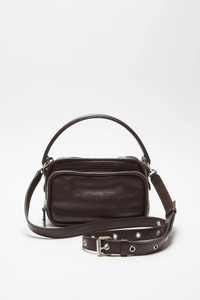 The Camero bag features a multipocket typology with a soft, rectangular design and a compact, structured silhouette. Crafted from small-grain shiny leather, it is accented with multiple zip compartments, a branded key charm, and signature denim-style button logo details. Complete with a drop handle and adjustable crossbody strap for versatile wear, the bag is styled with an accentuated shape that gives it a modern, relaxed attitude through its distinctive collapsed silhouette. - Multipocket bag - Small grained shiny leather - Drop handle and adjustable crossbody strap - Acne Studios logo embossed with silver film - Silver metal finishing - Branded key charm - Measurements: Height: 120mm, Width: 200mm, Depth: 110mm - Crossbody strap measurements: Adjustable 46 cm to 65 cm - Style ID: CAMERO KIT - Shell made from leather from a Leather Working Group (LWG) certified tannery with Silver rating. Lining made from ECONYL® recycled Nylon - Shell: 100% Calf leather, Lining: 50% Polyester, 50% Polyurethane