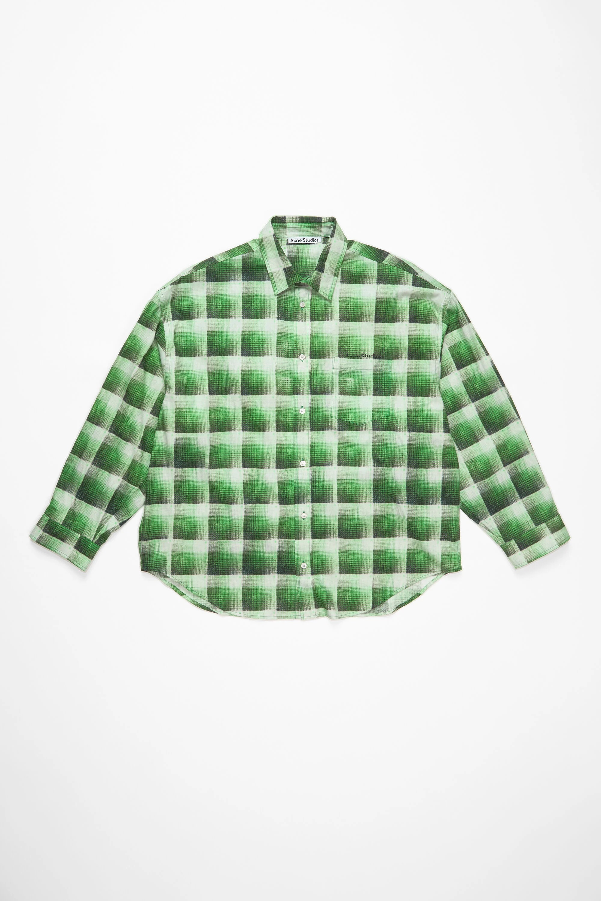 Button-up shirt features a printed check pattern, detailed with a logo embroidery at the chest and crafted in flannel cotton. Cut to a relaxed fit and hip length. - Relaxed fit - Button-up closure - Logo embroidery - Chest pocket - Model is 187 cm / 6'1 and wears a size 46 - Style ID: FN-MN-SHIR000842 - Made from organically grown cotton. - Shell: 100% Cotton
