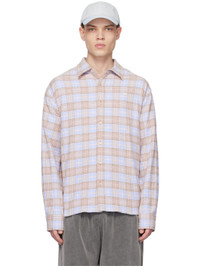 Stretch cotton flannel shirt. Check pattern throughout. · Spread collar · Button closure · Embroidered logo patch at chest · Adjustable single-button barrel cuffs · Logo graphic embroidered at back collar Supplier color: Light blue/Pink