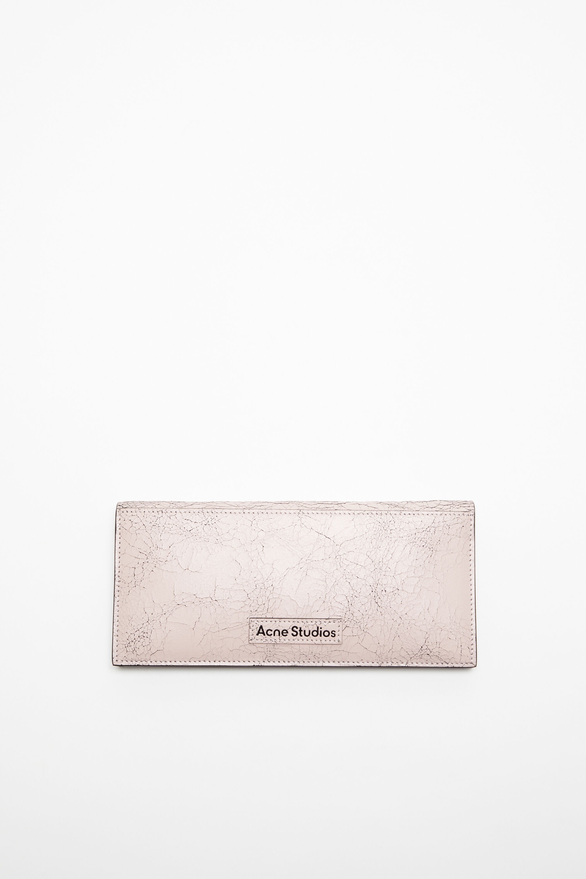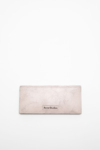 Large wallet is crafted from leather with a cracked finish, detailed with an Acne Studios logo patch. Complete with a decorative mirror engraved with 'you are beautiful' inside the wallet, card holder compartments, and a larger zippered compartment. Includes a chain, dog clip and ring for attachments. - Continental wallet - Folded opening - Cracked leather - Mirror inside - Card holder compartments - Zipper compartment - Chain, dog clip and ring - Measurements: 10 cm; 22 cm; 1.5 cm - Style ID: FN-UX-SLGS000270 - Shell: 100% Cow leather