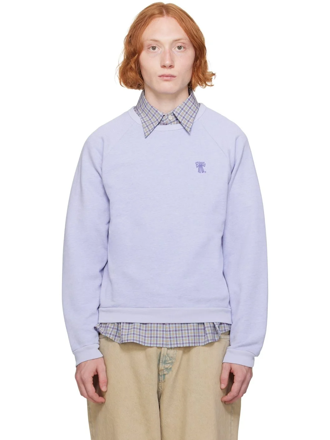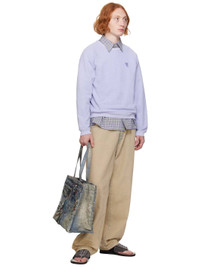 Organic cotton- and recycled polyester-blend French terry sweatshirt. · Rib knit crewneck, hem, and cuffs · Logo graphic embroidered at chest · Raglan sleeves · Partial waffle knit stretch cotton lining Supplier color: Faded blue Body: 85% organic cotton, 15% recycled polyester. Lining: 99% organic cotton, 1% elastane. Trim: 100% cotton. Made in Portugal 242129M204009