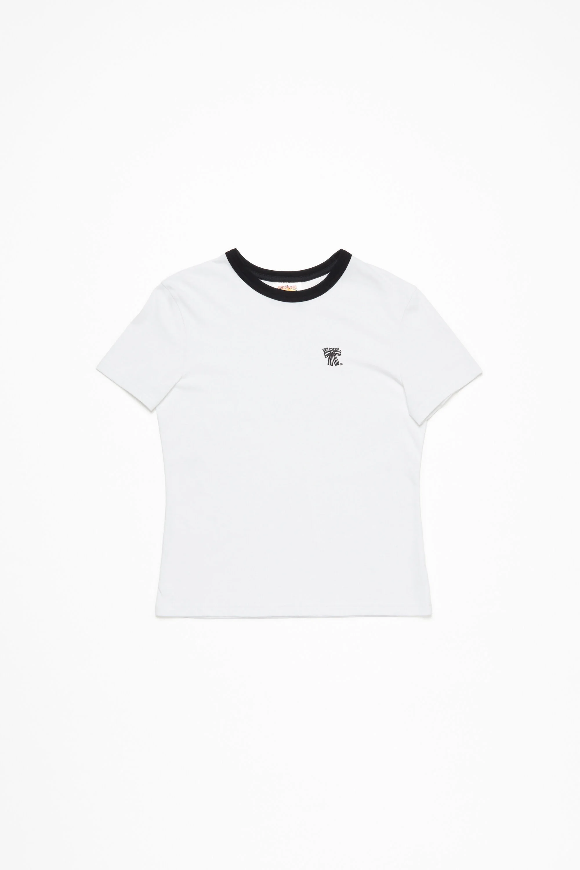 Crew neck t-shirt is crafted lightweight jersey cotton blend. Detailed with a small bow logo at the chest. Cut to a regular unisex fit and hip length. - Regular unisex fit - Hip length - Bow logo - Female model is 178 cm / 5'10 and wears a size S - Male model is 187 cm / 6'1 and wears a size M - Style ID: FN-UX-TSHI000100 - Made with organically grown cotton. - Shell: 80% Organic cotton, 20% Lyocell