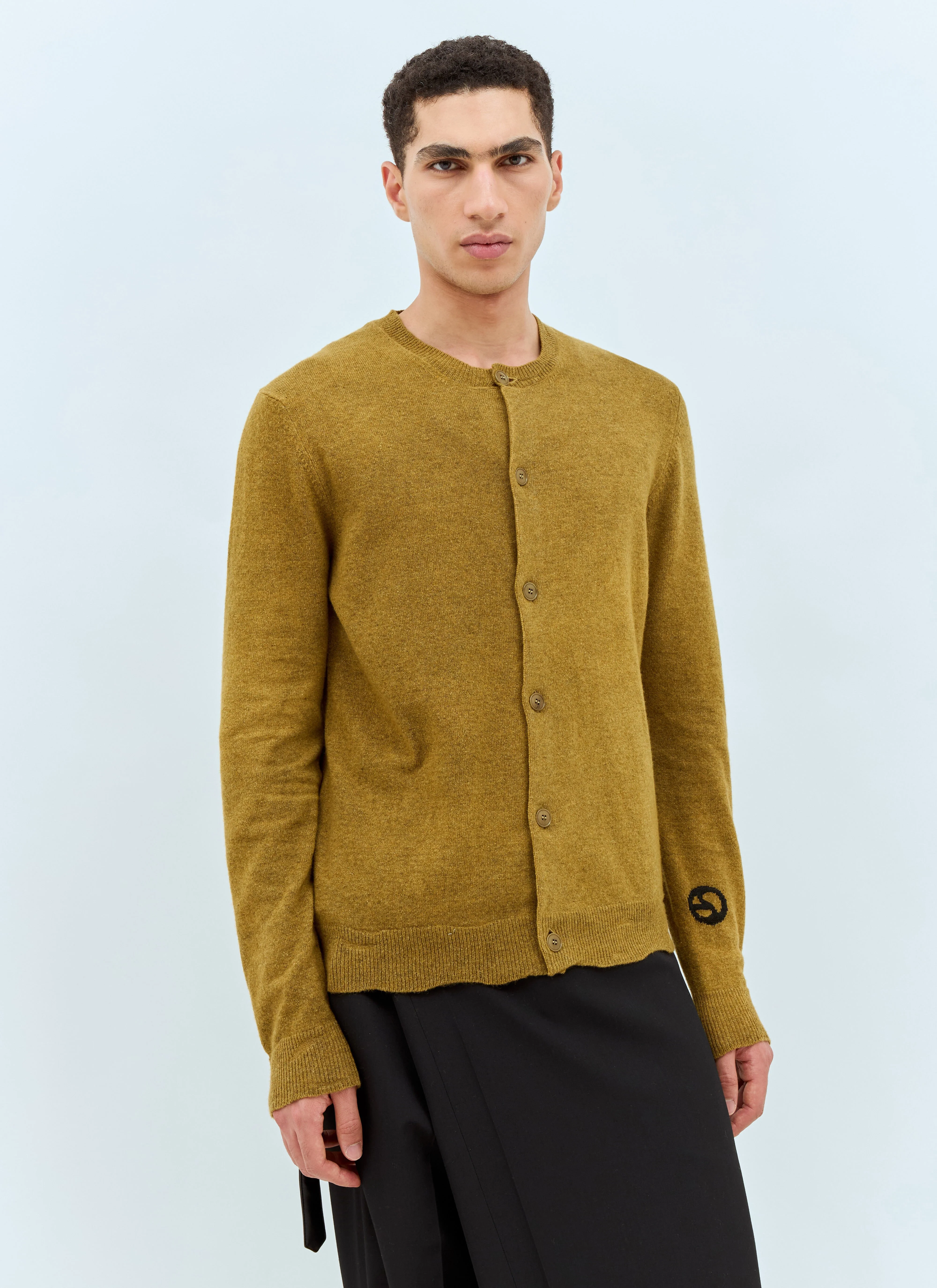 Crewneck cardigan in garment-dyed wool-and-cotton blend knit. - Crewneck - Front button fastening - Long sleeves - Logo embroidery at cuff - Made in Italy - 40% Wool, 40% Cotton, 20% Nylon - Color: Khaki - Code: B60323-DP3