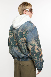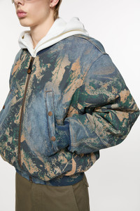 Bomber jacket crafted from non-stretch denim detailed with a seasonal print. Complete with a 2-way zipper closure, and ribbed finishing at the neckline cuffs and hem. Cut to a regular fit and below waist length. - Regular fit - Below waist - 2-way zipper closure - Printed denim - Ribbed neckline, cuffs and hem - Front and inner pockets - Fully lined - Style ID: FN-MN-OUTW001167 - Shell: 100% Regenerative cotton, Lining: 65% Polyester, 35% Cotton, Filling: 100% Polyester