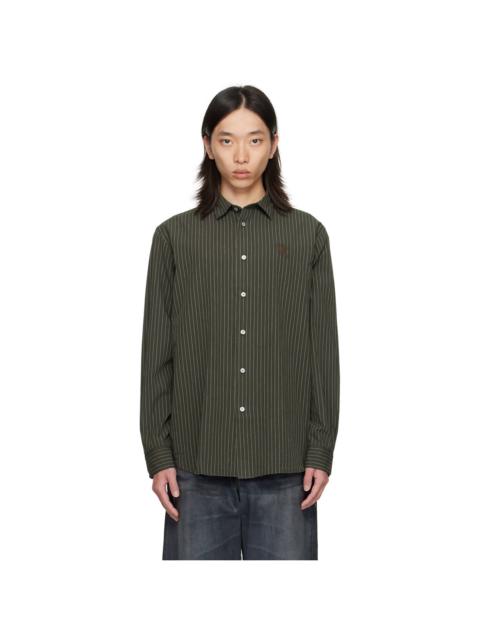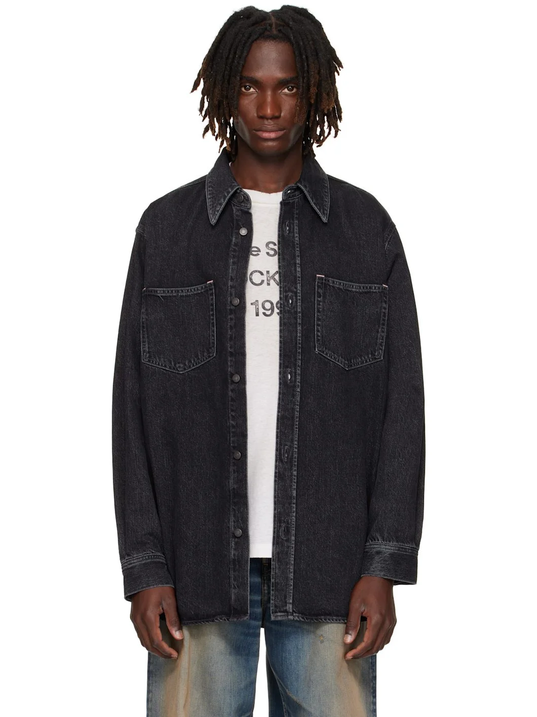 Non-stretch organic cotton denim shirt. · Fading throughout · Spread collar · Button closure · Patch pockets at chest · Shirttail hem · Pleats at buttoned barrel cuffs · Leather logo patch at back collar · Contrast stitching in pink Supplier color: Black 100% organic cotton. Made in Italy 252129M192000