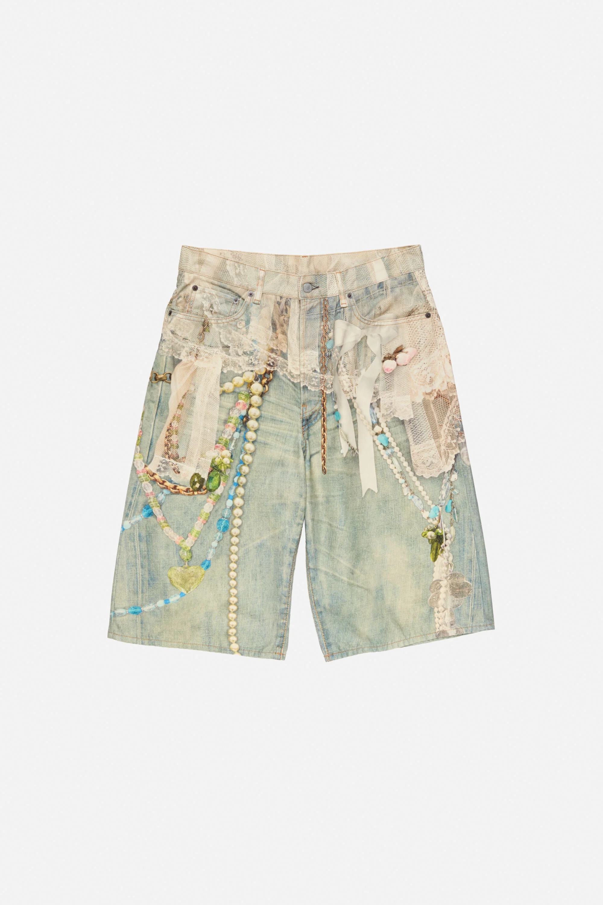 Denim shorts are cut to a loose fit with mid/low waist, straight leg and knee length. Detailed with a seasonal trompe-l'oeil print, crafted from non-stretch denim. - Loose fit - Mid/low waist - Straight leg - Knee length - Trompe-l'oeil print - 5-pocket construction - Button-up - Model is 183cm/ 6' and wears a size 46 - Style ID: FN-MN-SHOR000264 - Made from organically grown cotton - Shell: 100% Cotton