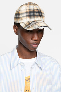 Baseball cap features a check pattern and logo artwork and distressed details. Complete with an adjustable D-ring closure. - Distressed details - Logo animations - D-ring closure - Unisex Hats One size (59cm) - Style ID: FN-UX-HATS000334 - Shell: 100% Organic cotton, Lining: 100% Organic cotton